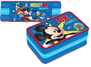 L'astuccio si compone di 3 scomparti, rifinito ognuno con una chiusura a zip Indispensabile e bellissimo astuccio pieno per la scuola elementare . Il corredo perfetto allo Zaino Scuola e utilissimo per il lavoro in classe ed a casa. Completo di accessori pastelli e Pennarelli di altissima qualità. contenuto: 1 gomma, 1 temperamatite, 1 penna rossa, 1 penna blu, 1 matita, 1 righello, 1 Forbicina 1 settimana, 18 pastelli a matita Disney , 18 pennarelli Giotto.