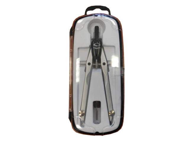 Compasso in ottone nichelato ad aste fisse con regolazione tramite vite centrale. Diametro massimo 270mm. Tubetto di mine di ricambio incluso nella confezione
