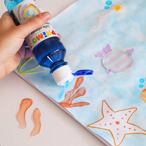 La colla ad acqua colorata è trasparente e lucida, senza solventi e senza glutine. Si lava facilmente. È disponibile in bottiglia in PET da 240 ml, con tappo dosatore e sotto tappo di sicurezza da rimuovere prima dell’uso. È ideale per lo slime ma non solo. È utilizzabile infatti per molteplici effetti creativi. Potete sperimentarla, ad esempio, come vernice colorata per i vostri dipinti o per creazioni lucide, usata da sola e poi lasciata asciugare per effetti variopinti. Può essere utilizzata su materiali da cartotecnica grazie all’elevato potere adesivo, ma anche su altri materiali come ad esempio su tovaglioli per nuovi effetti découpage per piccoli artisti.