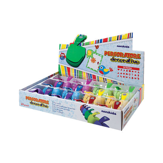 Perforatori decorativi 16 mm. con vari disegni. Meccanismo a leva. Utilizzabili con carta fi no a 230 gr. ed Eva Foam da 2 mm. Disponibile in 6 colori. RENNA
