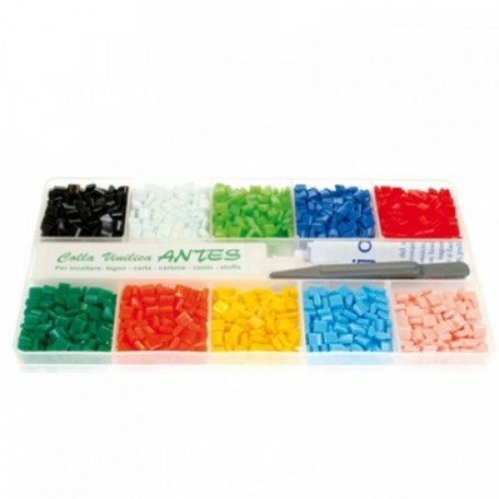 ANTES Scatola JOLLY Tessere Mosaico In 10 Colori + Pinzetta + Colla Vinilica 005