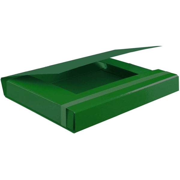Scatola per archivio in cartone con chiusura a elastico formato A4 di colore verde