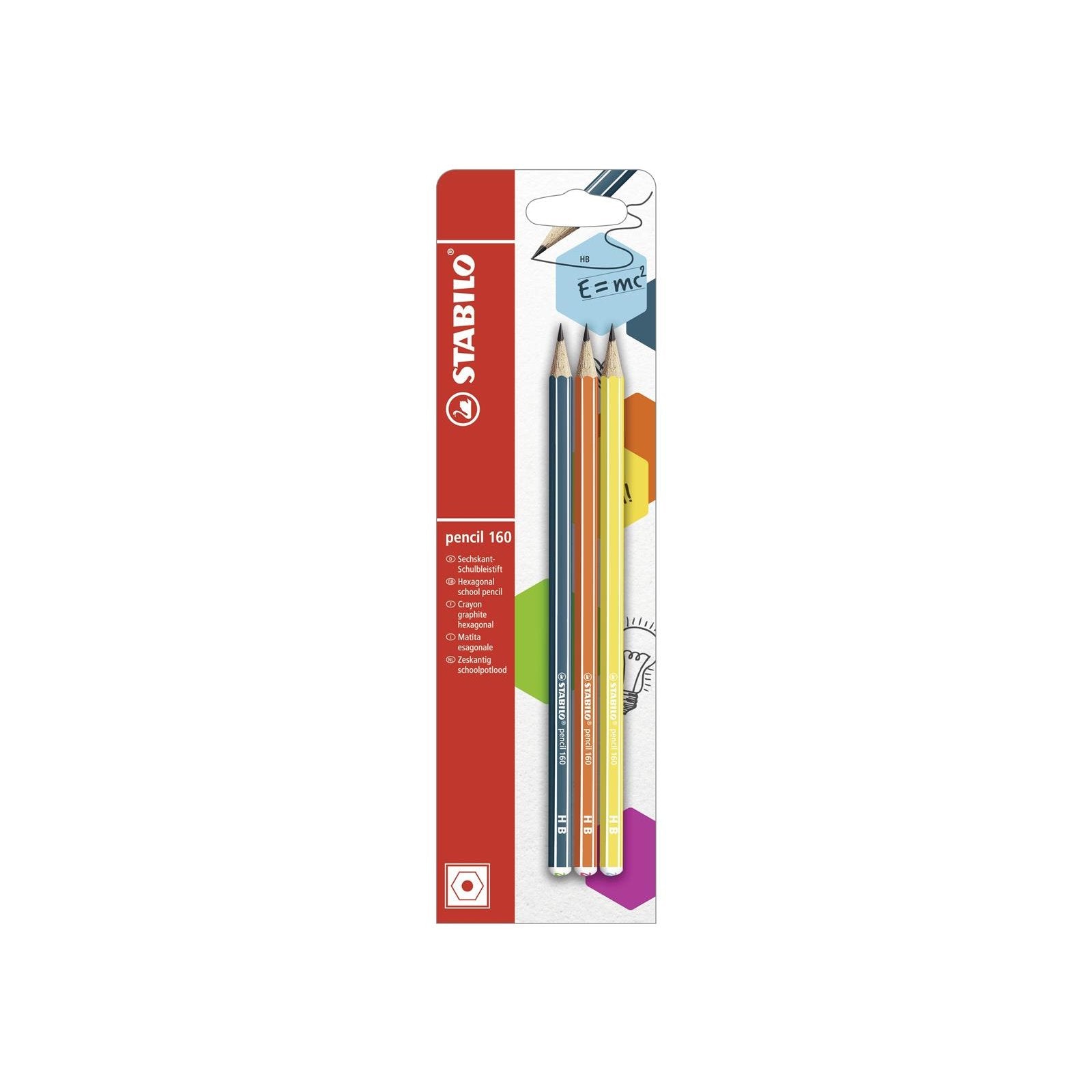Confezione da 3 matite HB di STABILO. La matita in grafite 160 di alta qualità è perfetta per la casa, la scuola o l'ufficio. Progettato con una mina estremamente resistente alla rottura che fornisce una linea liscia e morbida. Ogni matita è HB che la rende adatta alla scrittura e all'uso generale e viene fornita con una comoda punta in gomma neon. Facile da impugnare e comodo da usare grazie alla tradizionale canna esagonale.