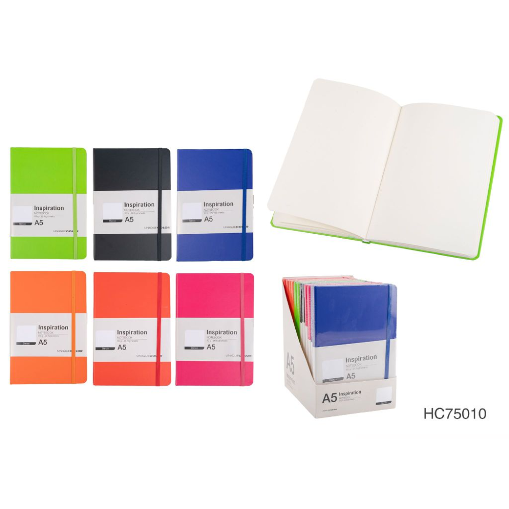TACCUINO A5 CARTONATO 80GR 96 FOGLI CON ELASTICO FOGLI BIANCHI A RIGHE