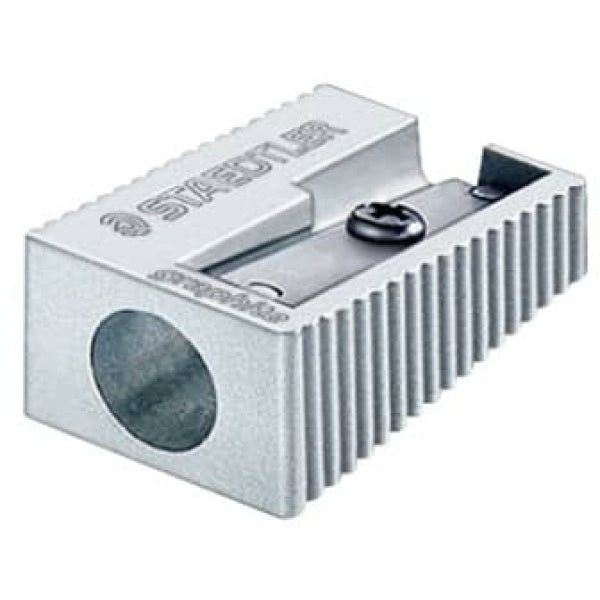 Temperamatite in metallo ad 1 foro, per matite a fusto normale fino a Ø 8,2 mm, guida matita lunga e sicura, lama in acciaio temperato. 1 Pezzo